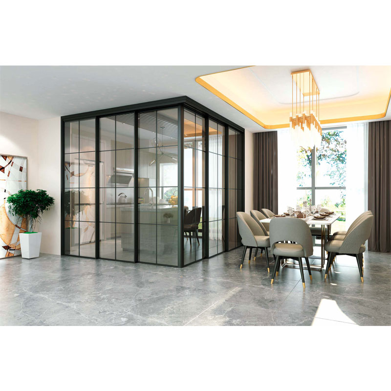 Porta in lega di alluminio senza guida La porta PD può essere spinta e tirata, piegata in un'unica anta e quindi aperta contro la parete. La porta PD integra le funzioni di porta scorrevole e porta apribile in una, che possono essere commutate in base alle diverse esigenze di utilizzo. Ad esempio, può essere utilizzata come una porta scorrevole quando le persone entrano ed escono frequentemente e può essere completamente aperta come una porta piatta quando è necessario spostare oggetti di grandi dimensioni, il che è molto comodo e pratico.